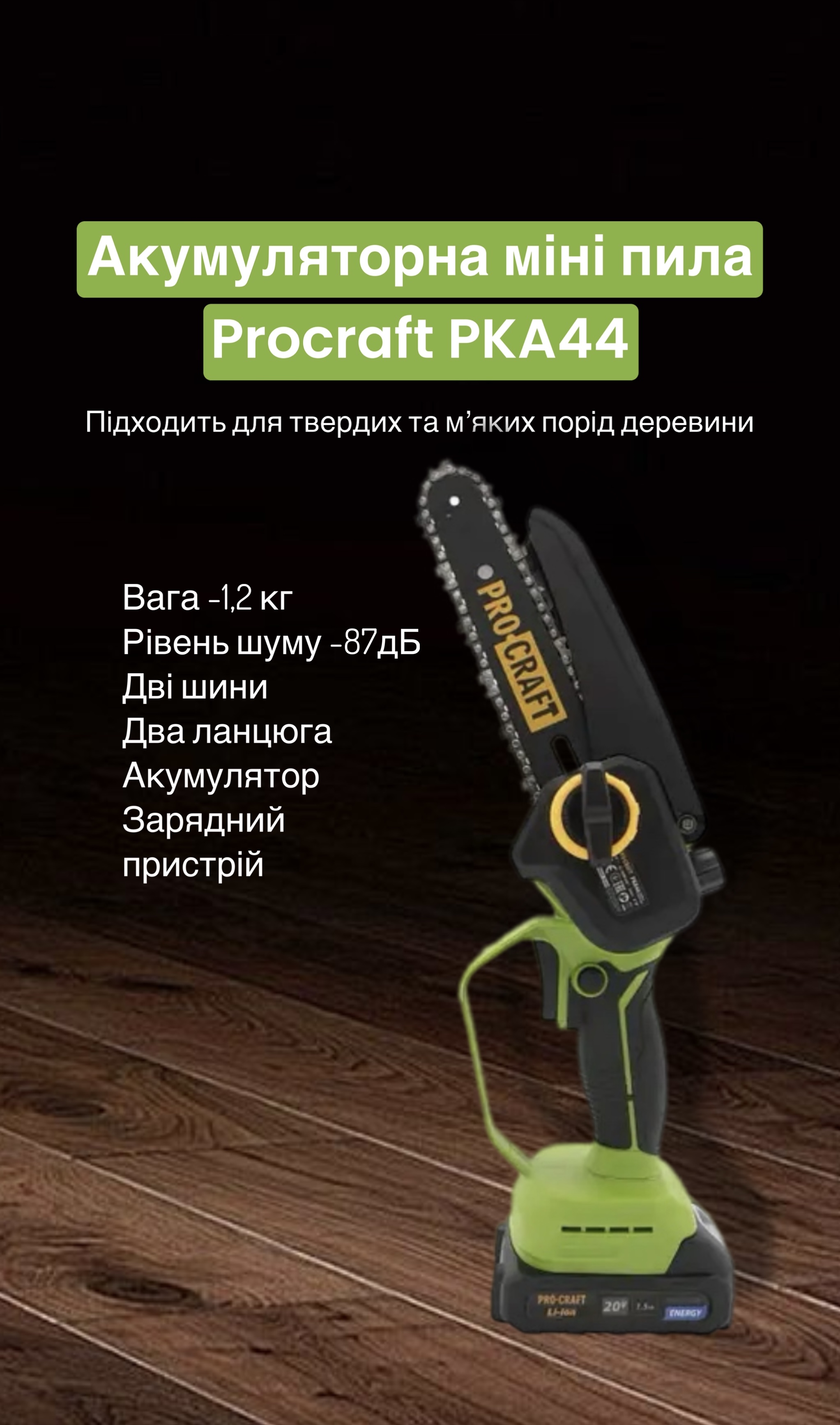 Акумуляторна міні пила Procraft PKA44- це зручний помічник на дачі чі в саді , дві зручні шини